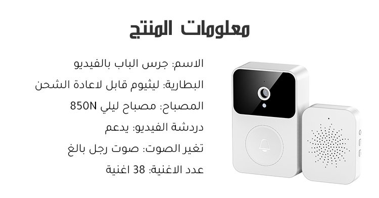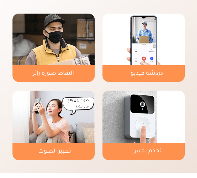 جرس باب ذكي بفيديو مع مصباح ليلي ودردشة فيديو عن بعد