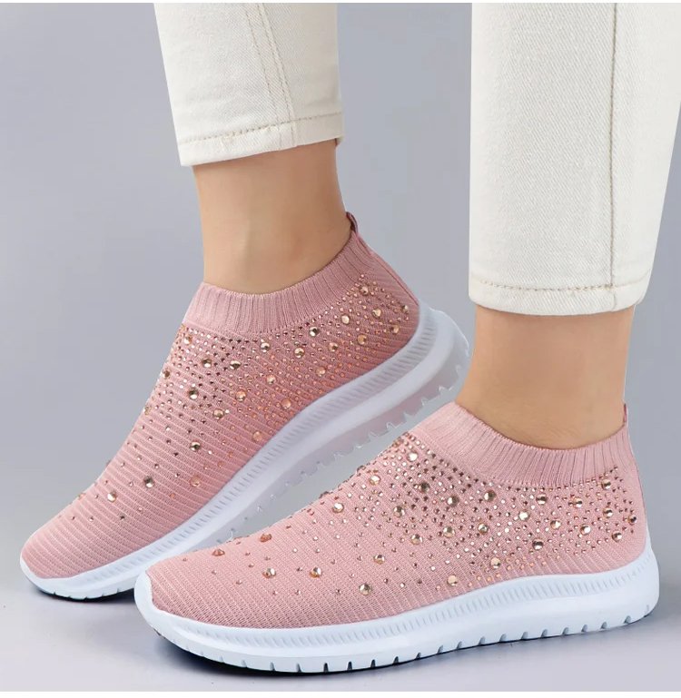 حذاء رياضي جيد التهوية مزين حجر راين براق