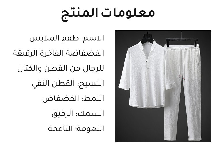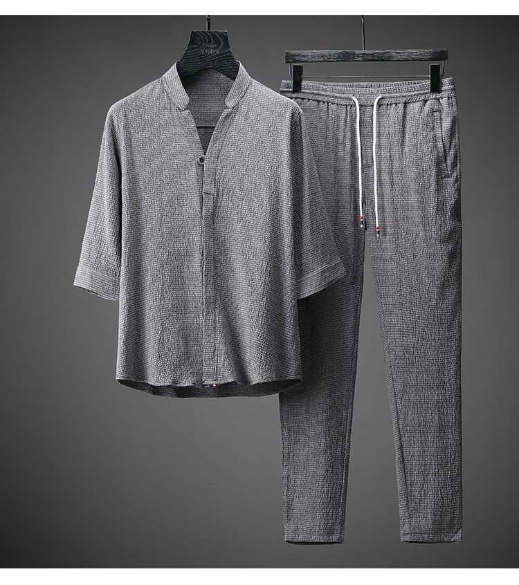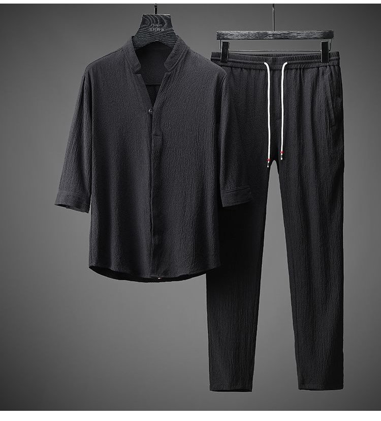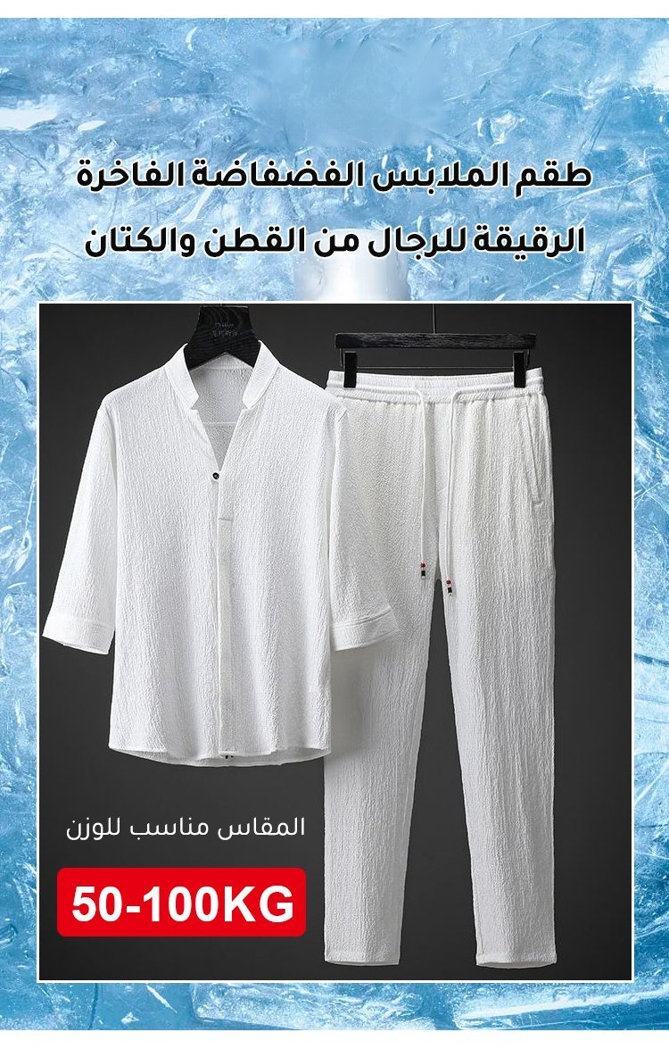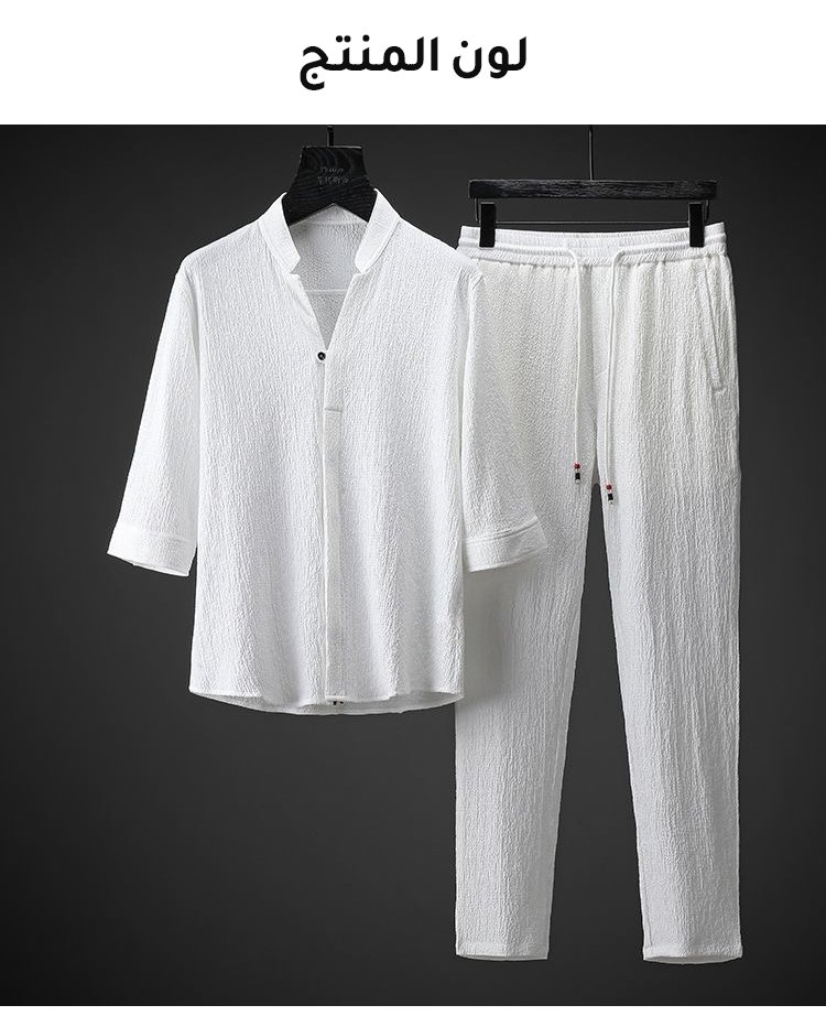 طقم الملابس الفضفاضة الفاخرة الرقيقة للرجال من القطن والكتان